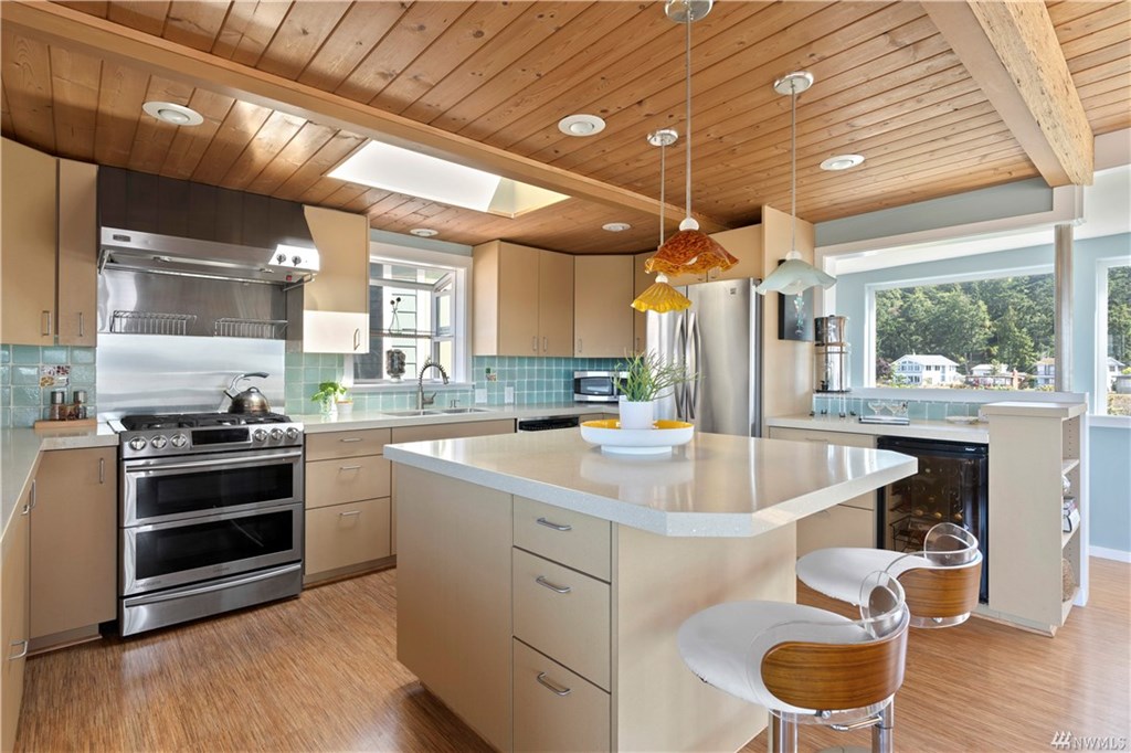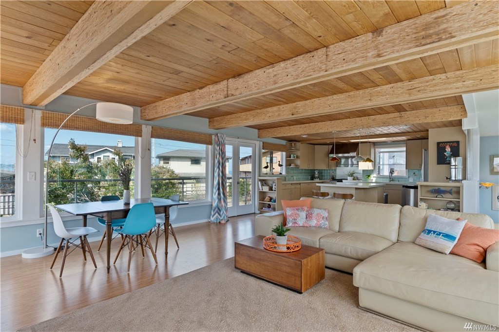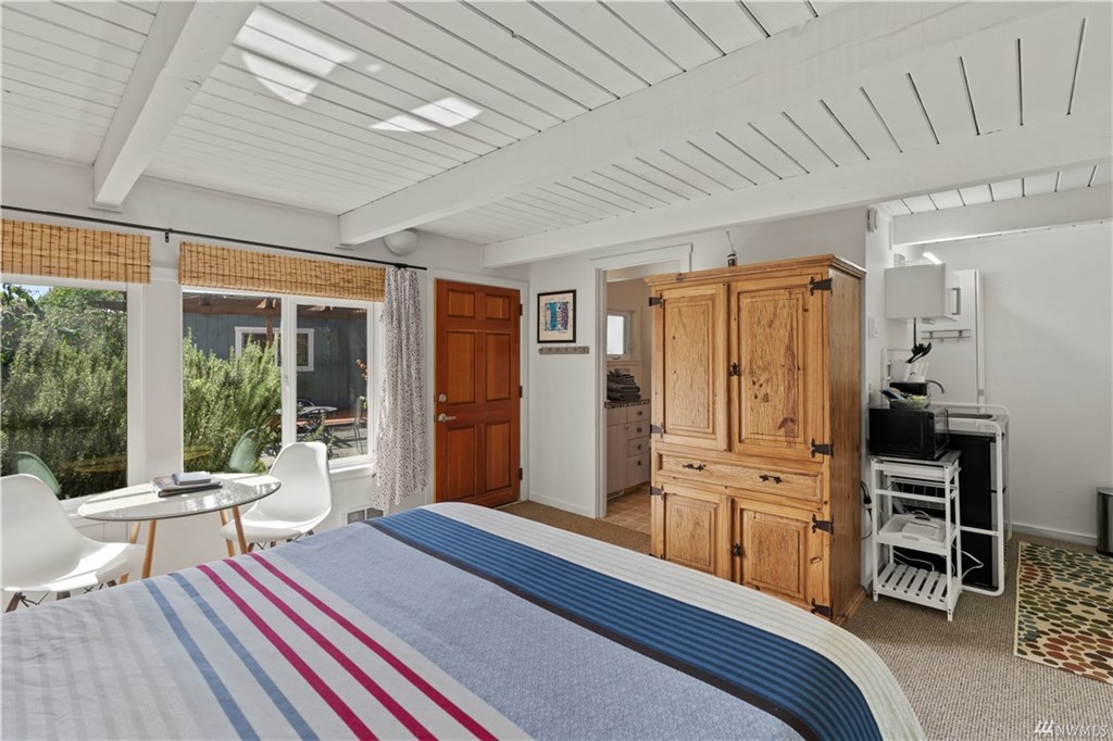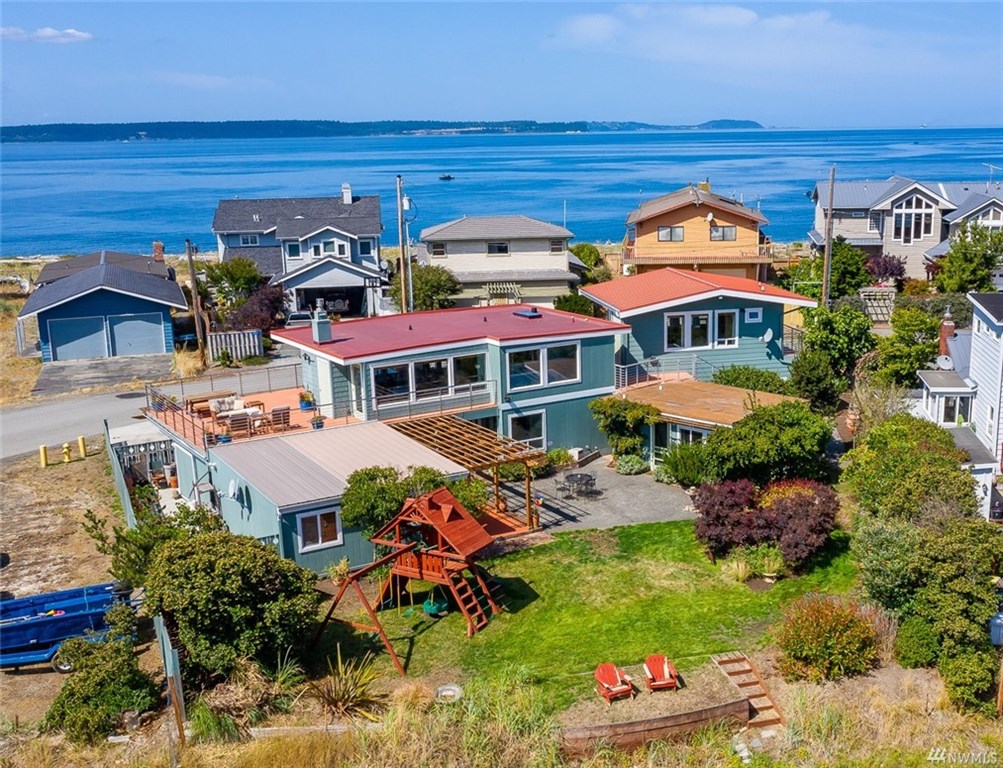 Set against the backdrop of passing whales and ships, this majestic Whidbey Island waterfront retreat boasts wrap around views of the Sound and lagoon, designed with local artisan touches. Ready for entertaining, with 2 bedrooms, 1.5 baths, open concept living spaces and a chef’s kitchen. Included in this slice of paradise are two additional living spaces, each fully equipped with 3/4 baths and kitchenettes, currently active as vacation rentals. Community boat launch and private beach across the street. View property details on Zillow. MLS#1512030
